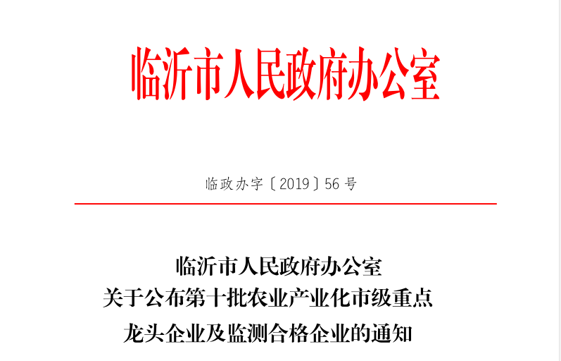 【集團(tuán)資訊】喜訊:蘭陵種雞公司榮獲農(nóng)業(yè)產(chǎn)業(yè)化市級(jí)重點(diǎn)龍頭企業(yè)稱(chēng)號(hào)